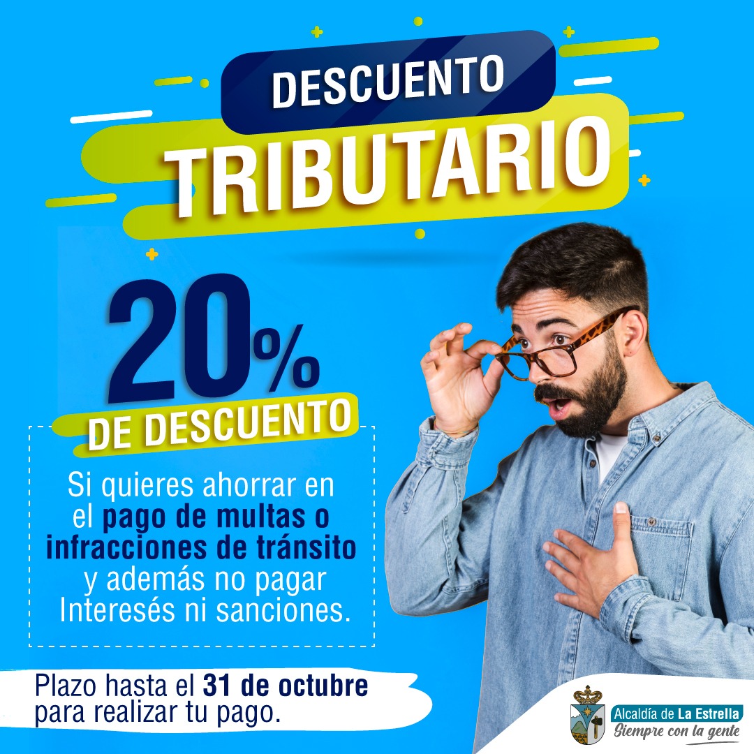 Los contribuyentes, responsables y deudores de impuestos, tasas, contribuciones (Industria y Comercio, Predial, etc) y multas (de tránsito, del código de policía, urbanísticas, etc.), que están pendientes de pago al 20 de mayo de 2020, podrán acceder a los siguientes descuentos en capital, sanciones e intereses: