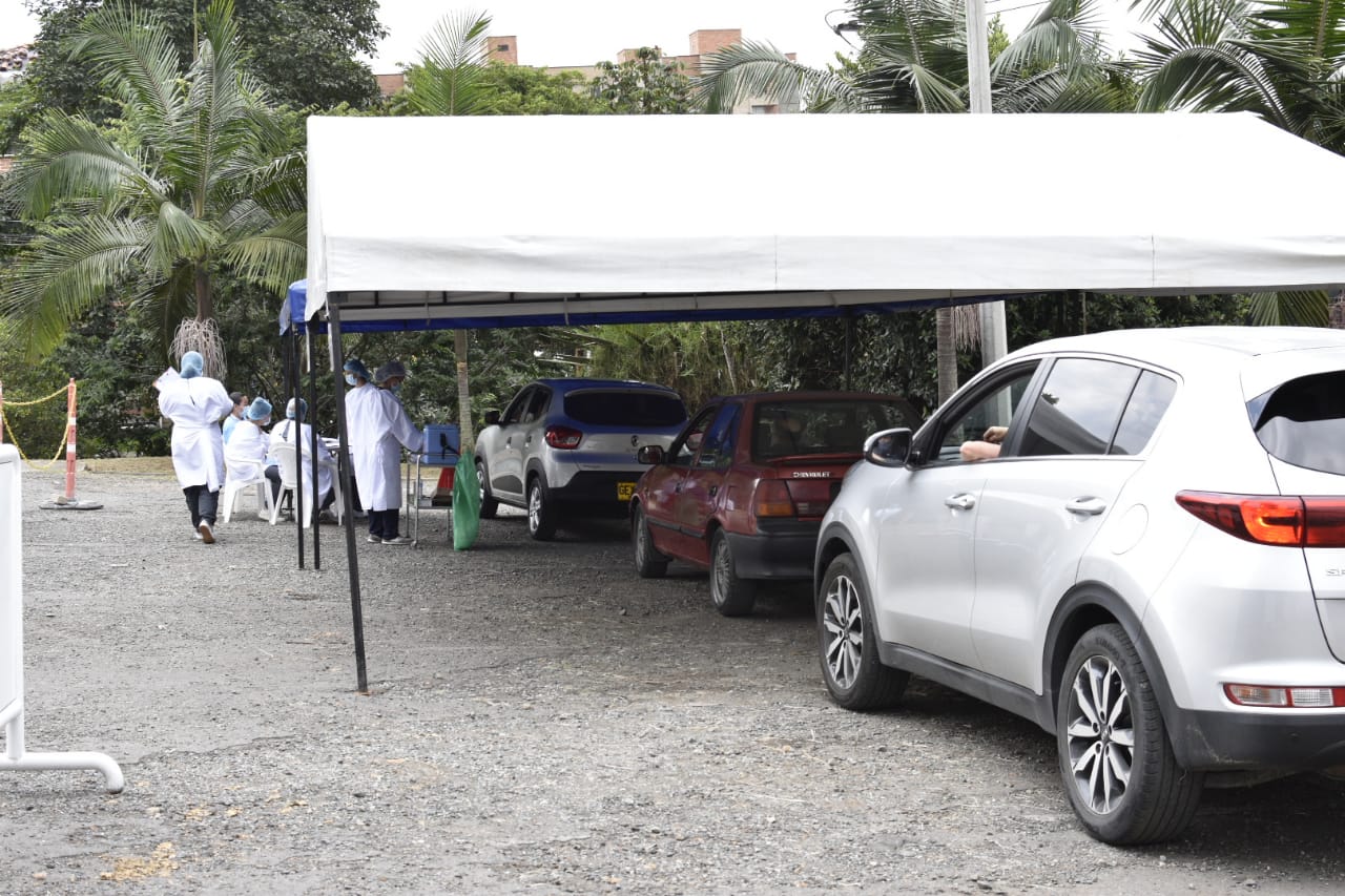 Este primer escenario, se realiza en el parqueadero conjunto a la E.S.E. Hospital La Estrella, resaltando que el servicio de urgencias está a menos de 30 metros, lo que facilita el traslado del paciente en caso de presentar alguna reacción adversa a la vacuna. En la primera jornada, se vacunaron 30 personas mayores de 65 años, todas ellas con condiciones que dificultaban su movilidad.