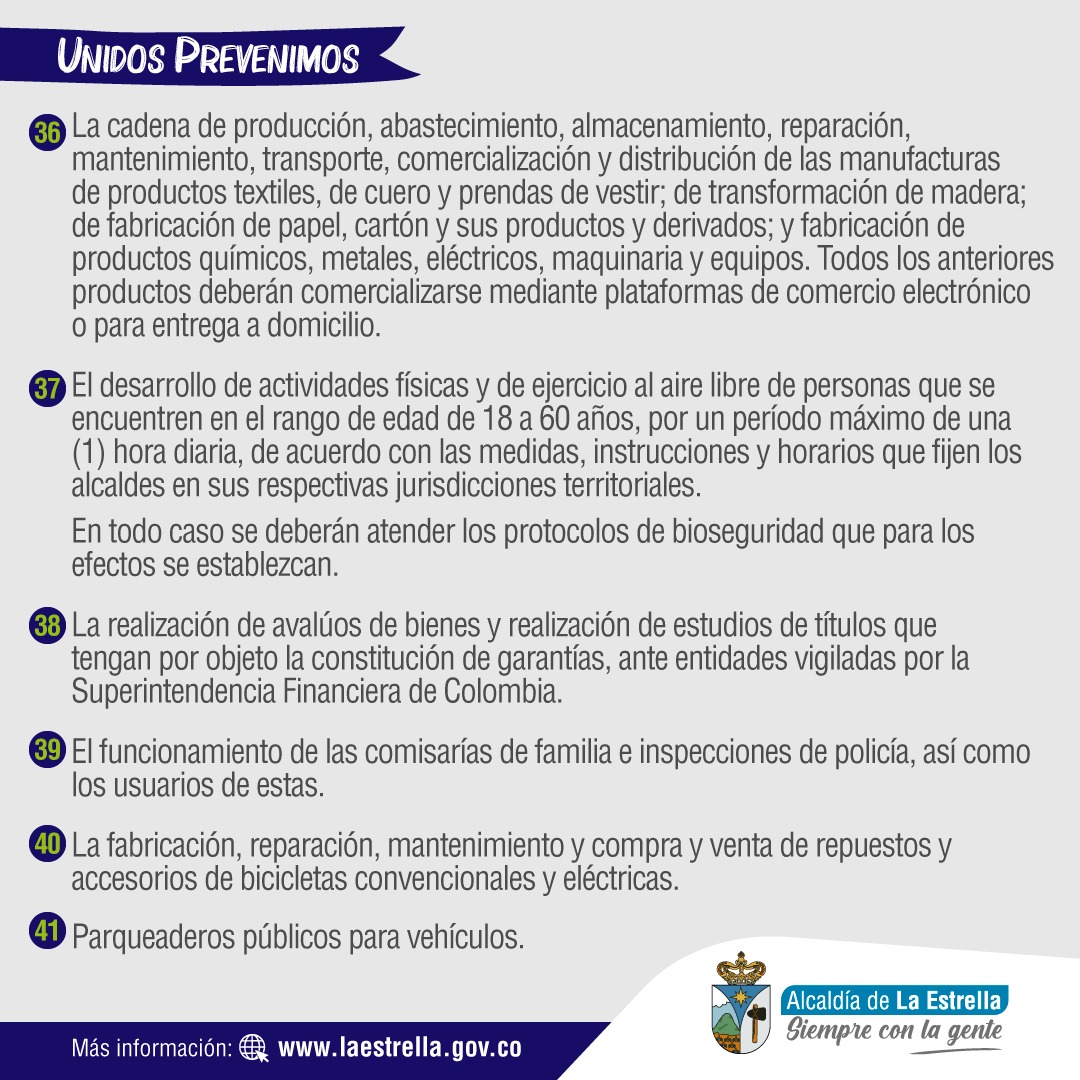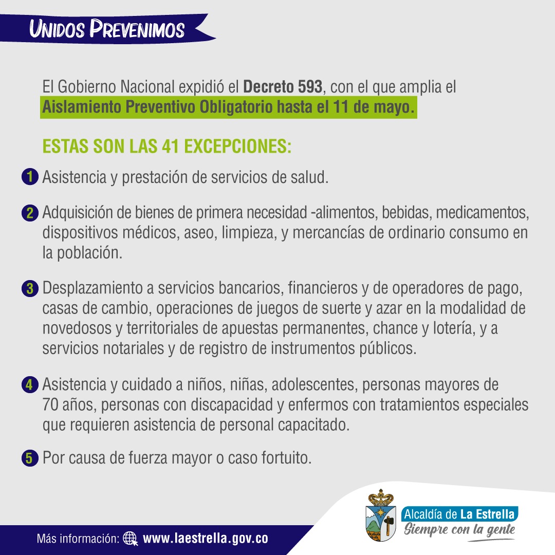 Estas son las 41 excepciones del Decreto 593 del Gobierno Nacional, si estás en alguna de ellas, desde mañana lunes 27 de abril podrás circular teniendo en cuenta todas las recomendaciones, medidas de protección y prevención para evitar un posible contagio de #COVID19: