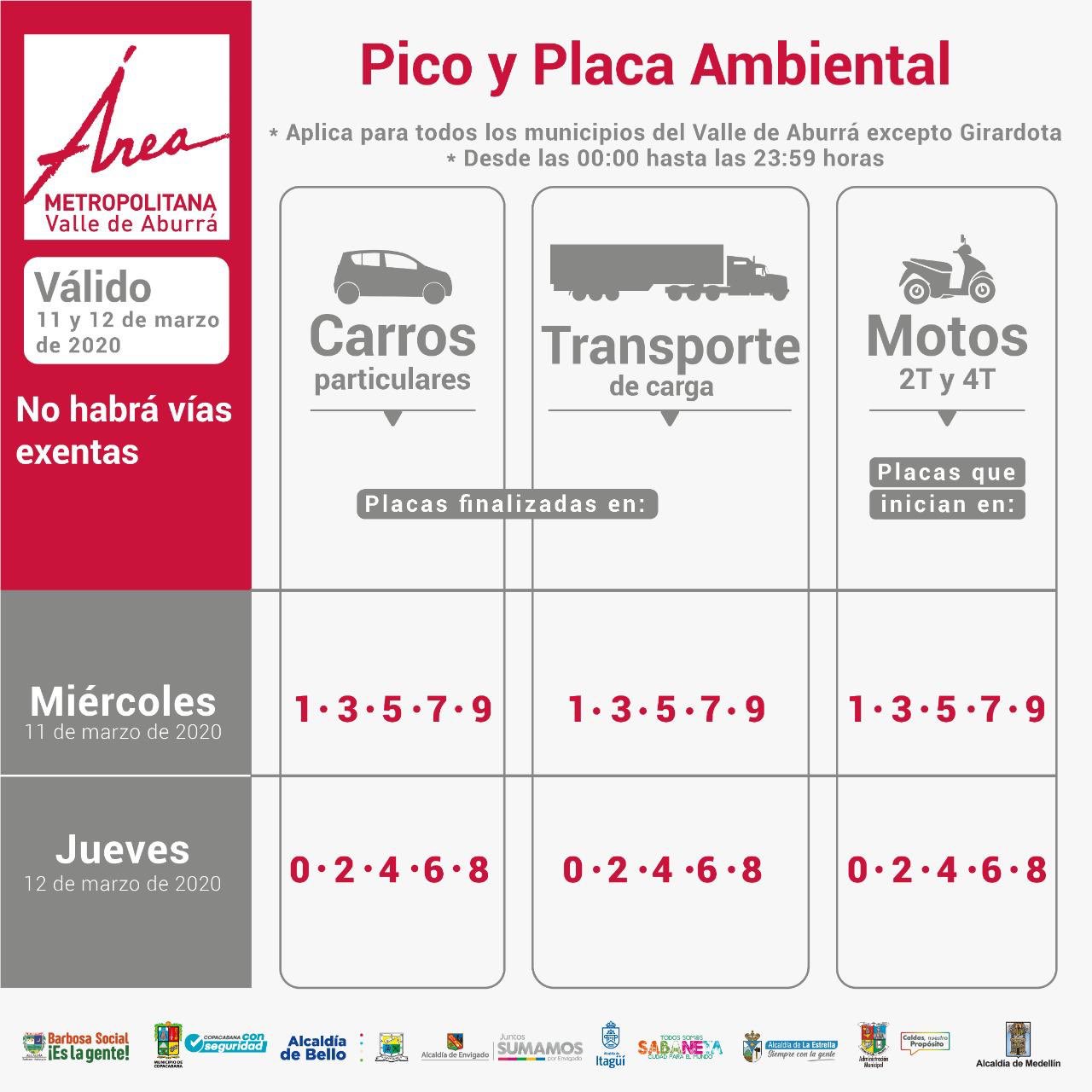 Junta Metropolitana determinó ampliar el pico y placa para vehículos particulares, motos y transporte de carga a cinco dígitos durante las 24 horas del día, a partir del miércoles 11 de marzo.