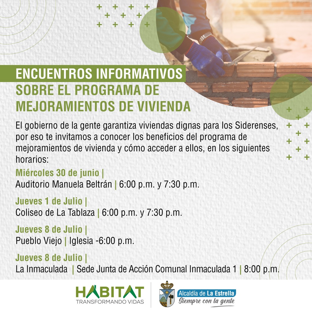 Iniciaron las reuniones con los siderenses que quieran acceder al programa de mejoramiento de vivienda. que consiste en realizar mejoras a viviendas de las familias que no tienen los recursos necesarios para intervenirlas. Las reparaciones más comunes en los hogares son arreglos o mejoras en los baños, cocinas y pisos.