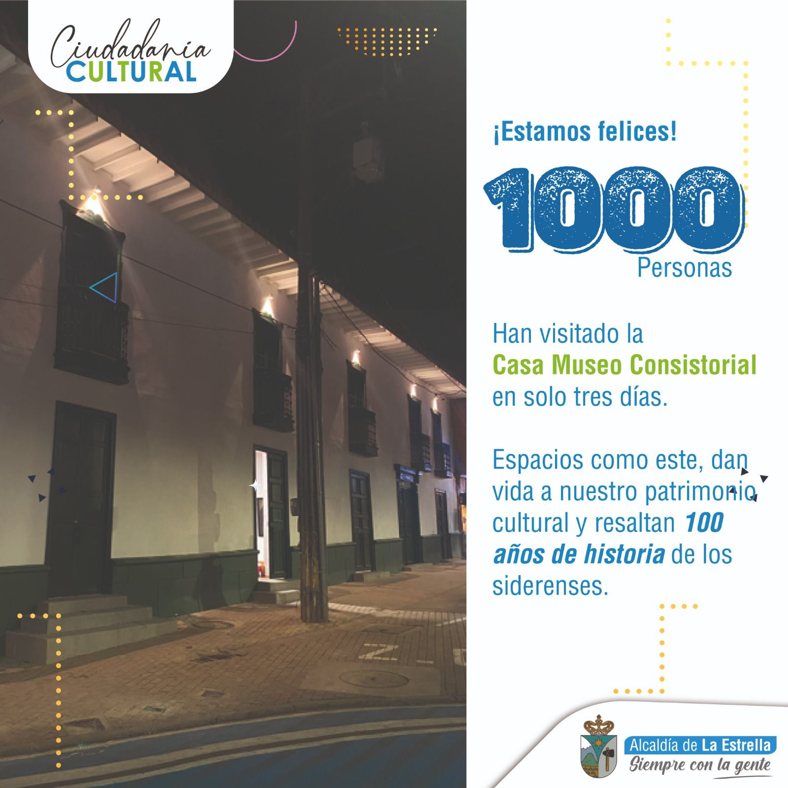 Para la Subsecretaría de Ciudadanía Cultural es muy gratificante que, además de las 700 personas que han pisado la Casa Consistorial el día de su apertura, en tan solo dos días ya se han acercado más de 300 siderenses para hacer su recorrido y observar las obras en exposición del grupo Diásporas (grupo de proyección de artes plásticas del municipio de La Estrella), al igual que las obras del artista Roberto Ignacio Palomino Torres con su exposición: Reflexiones Visuales sobre el tema del agua, y el artista siderense empírico, Samuel Acosta Herrera.